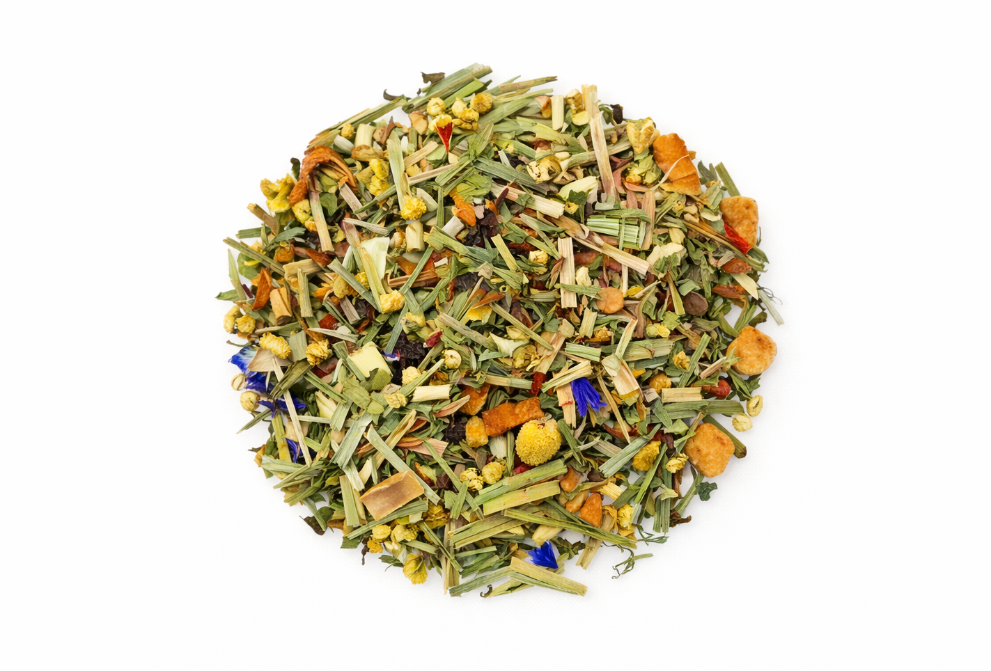 Яблоко , гибискус , малина , мята , ромашка , смородиновый лист, лепестки календулы .